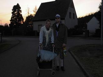 Die Zampertour ging in Jämlitz-Hütte los. Dann war Zschorno und die Ausbauten dran. Das alles haben sie mit dem PKW abgeklappert. Diesmal begleiteten uns keine echten Musikanten sondern Musik aus der Konserve, welche im Kinderwaagen untergebracht war.
