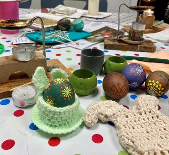 Wir werden kreativ, tauschen uns aus, planen kleine Ausflüge – aber vor allem tun wir das, was unsere Besucher sich wünschen! So haben wir uns auch in diesem Jahr wieder auf das Osterfest eingestimmt und gemeinsam sorbische Ostereier gestaltet.