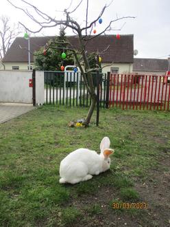 Für die Vorbereitungen möchten wir uns bei allen fleißigen Helfern und Helferinnen bedanken. Ein weiterer Dank geht an „Rudis Mama“ - also seine Besitzerin. Denn Rudi ist vielleicht kein waschechter Osterhase, dafür aber ein reinrassiger deutscher Riese!
