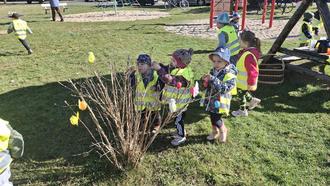 Ein besonderes Highlight war das Schmücken der Sträucher. Mit viel Eifer und Stolz hängten die Kinder ihre bunten, selbstgebastelten Ostereier auf – und verwandelten die Dorfaue in ein fröhlich-leuchtendes Osterparadies.