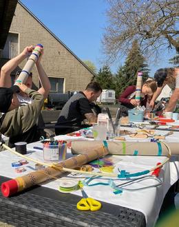 Am Samstagvormittag, dem 22.04.2023 war es dann so weit. Papas mit ihren Kindern kamen bei herrlichem Sonnenschein im „Kleinstein“ an. Und auch Kolleginnen und Papas aus unseren Familientreffs in Laubsdorf und Burg sind angereist mit der Mission „zusammen schaffen wir das“. Es wurde geschnitzt, gespannt, verziert, probiert.