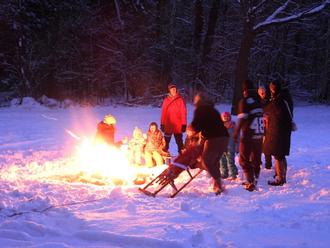 Am Forsthaus angekommen, wärmten sich Alt und Jung am Feuer und ließen sich die frisch gegrillten Bratwürstchen und die heißen Getränke schmecken.