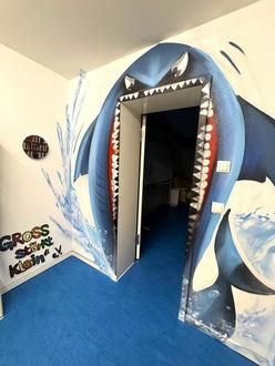 Ein hungriger Hai empfängt die Nutzer des Veranstaltungsraumes unserer Stadt- und Schulbibliothek. Lesen Sie dazu mehr im Innenteil dieser Ausgabe.