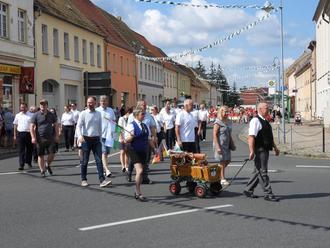 Die Priv. Schützengilde Dommitzsch, der Bürgermeister Bernd Schlobach und einige Stadträte führten den Festumzug an.