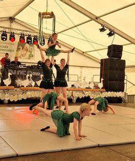 Im Festzelt sorgten die Mörtitzer Akrobatinnen für echte Wow-Momente. Wenn man dachte, man hätte durch die Auftritte der letzten Jahre alles schon gesehen, bewiesen diese jungen Turntalente mit neuen Tanz-, und Balance-Choreografien inklusive waghalsigen Pyramiden das Gegenteil – ein echter Augenschmaus! Im Anschluss verzauberten die kleinen Stars aus der Kindertagesstätte "4 Jahreszeiten" das Publikum mit ihrem Zirkusprogramm, das so bunt und fröhlich war, dass die ältesten Zuschauer schon ein wenig neidisch auf die Unbeschwertheit der Kinder wurden. Auf dem Festplatz drehten unterdes die Karussells ihre Runden, große und kleine Gäste hatten ihren Spaß beim Entenangeln, Losen und der von enviaM gesponserten Feuerwehr-Hüpfburg.