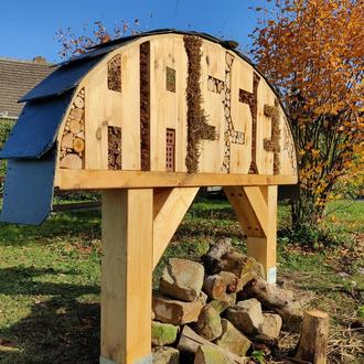 Hassel lebt wieder. Genau das hat man im vergangenen Jahr bemerkt. Gerade in den letzten Monaten ist einiges bei uns in Hassel passiert, über das wir hier noch kurz berichten wollen. Angefangen mit unserem schönen Insektenhotel. Viele haben es schon beim Vorbeigehen oder -fahren gesehen. In erster Linie dient es den Insekten als Lebensraum. Mit Rundhölzern, Ästen, Tannenzapfen, Schilf und anderen Materialien haben wir ihnen einen schönen großen Unterschlupf gebaut und ringsherum mit 90 Stauden tolle Nahrungsquellen geschaffen. Allerdings haben wir, dank Silvio Scholz seiner Idee, gleich noch eine Kennzeichnung mit eingebaut, dass auch die Autofahrer wissen, wo sie sind. Und durch die finanzielle Unterstützung der SUNK (Stiftung Umwelt, Natur- und Klimaschutz des Landes Sachsen-Anhalt), bei der Frank Denk erfolgreich eine 90-prozentige Förderung beantragt hat, können sich nun viele an diesem neuen Gebilde in Hassel erfreuen.