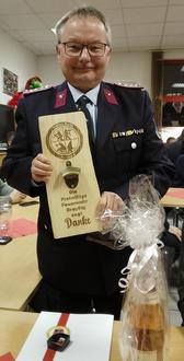 Bei der Versammlung wurde er dann von uns und Christian Schirner für seine herausragenden Leistungen und langjährige Mitgliedschaft u. A. Mit der Ehrennadel des Kreisfeuerwehrverbands geehrt.