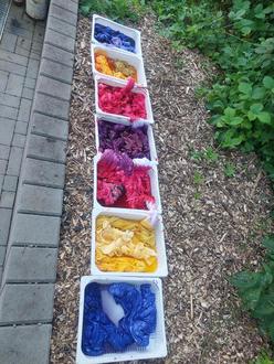 In der ersten Ferienwoche ging unsere Reise nach Asien. Wir gestalteten bunte, asiatische Fächer und lernten die vielfältige Farbenwelt Indiens kennen, wir färbten uns mit der Batik-Technik bunte Shirts.