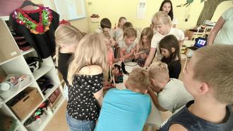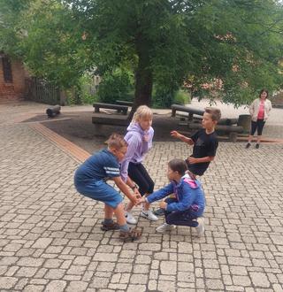 In Ferienwoche vier blieben wir zu Hause, in Europa. Einheimische Tiere und Pflanzen lernten wir auf einem Ausflug nach Weißenfels kennen. Dort besuchten wir den Heimat- und Naturgarten, unter anderem konnten wir dort den ersten Schneeeulen-Nachwuchs, den es dort erstmalig seit 30 Jahren gab, bestaunen. Zum Toben auf dem dortigen Spielplatz blieb auch noch genügend Zeit. Am Donnerstag hatten Frau Huhnstock und ihre ehrenamtliche Helferin, aus der Bibliothek, eine Schatzsuche durch den Droyßiger Schlosspark vorbereitet. Es galt verschiedene Umschläge zu finden, die nicht nur Wegbeschreibungen zum nächsten Versteck enthielten, sondern auch Fragen zu den verschiedenen Ländern und Kontinenten, welche wir schon auf unserer Ferienreise kennengelernt haben. Am Ende wartete eine Belohnung in Form von verschiedensten Leckereien auf uns und wir bekamen einen großen Atlas geschenkt. Vielen Dank nochmals an Frau Huhnstock und ihre Praktikantin für diese spannende und kurzweilige Schatzsuche. Der Freitag war sehr heiß, deshalb hieß es „Wasser marsch“. Mit Wasserpistolen, Wasserbomben und dem Gartenschlauch gab es eine zünftige Wasserschlacht zum Wochenabschluss.