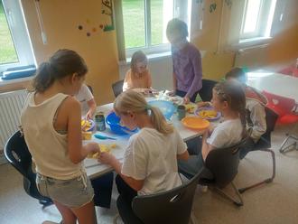Unsere zweite Ferienwoche führte uns nach Afrika. In dieser Woche gestalteten wir kreativen Schmuck aus Holzperlen, mixten uns einen leckeren Smoothie aus exotischen afrikanischen Früchten und begrüßten außerdem die Kinder aus dem Kretzschauer Hort bei uns.