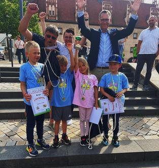 Mit vollem Ehrgeiz ging es los. Unsere vier Sportler rannten so schnell sie konnten. Im Ziel angekommen war eins klar, wir hatten die bis dahin schnellste Rundenzeit erlaufen. Wir waren gespannt, ob es für eine obere Platzierung ausreichen würde. Denn es kamen noch ein paar Läufe nach uns dran. Die Siegerehrung brachte dann Gewissheit.