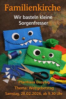 Die nächste Familienkirche findet am 28.02.2026 um 09:30 Uhr statt und steht ganz im Zeichen des Weltgebetstags, der 2026 aus Nigeria kommt und den Titel „Kommt! Bringt eure Last“ trägt.