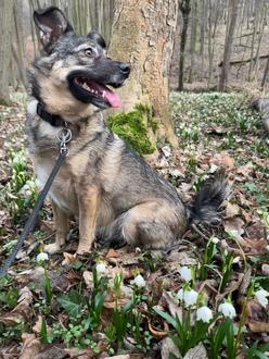 „Resi“ ist eine kleine Mischlingshündin, die im Februar 2023 aus einer rumänischen Tötungsstation gerettet wurde. Seit April 2023 wohnt sie in Droyßig, besucht in Gladitz die Hundeschule und macht Ausflüge zum Beispiel zur Märzenbecherwiese in Ossig.