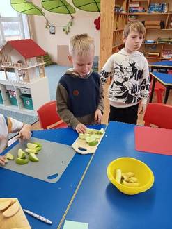 Die Apfelkerne haben wir eingepflanzt. Nun hoffen wir, irgendwann ein kleines Apfelbäumchen auf unseren Spielplatz einpflanzen zu können.