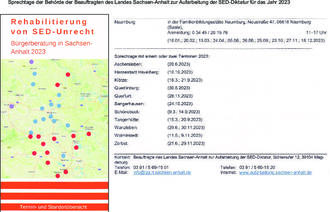Sprechtage der Behörde der Beauftragten des Landes Sachsen-Anhalt zur Aufarbeitung der SED-Diktatur für das Jahr 2023