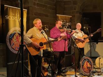 Dann legten die Herren Dave Gilfillan, Grant Simpson und Ronnie McDonald musikalisch los. Bereits mit dem ersten Titel „The Back of Bennachie“ beeindruckten Sie mit Energie und Spielfreude. Das Publikum ging begeistert mit und sparte nicht mit Applaus. Ihre Lieder erzählen von der Geschichte, der Kultur und den Landschaften Schottlands.