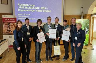 Auch Droyßig wieder mit dabei. Die Familie Schomer-Beikirch wurde vom Tourismusverband Sachsen-Anhalt e.V., mit ihren zwei Gästewohnungen im „Bahnhof“ von Droyßig, als „Gästeliebling“ 2024 ausgezeichnet.