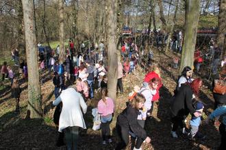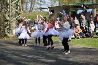 Ab 16 Uhr begann das Programm - durch das DJ Schrammi den ganzen Nachmittag führte - mit Tänzen der Droyßiger Sportgemeinschaft. Danach folgte das lang ersehnte Ostereiersuchen. Hierbei waren 500 gelbe Eier im Schlosspark versteckt. Jedes Kind, das ein Ei gefunden hatte, konnte dies im Anschluss gegen eine Ostertüte eintauschen. Als Highlight wurde ein goldenes Ei gesucht werden, dessen Finder einen Bowlinggutschein für das Bowlingcenter Brühl Zeitz erhalten hat. Auch in diesem Jahr hat das Eiersuchen - gemeinsam mit dem Osterhasen (Hasi Hamal) - wieder allen viel Freude bereitet. Im Anschluss führte das Kindertheater des Kulturverein Droyßig e.V. das Stück „Im Hexenwald“ auf.