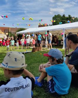 Der Tag des Kinderfestes begann dann mit schönstem blauen Himmel und Sonnenschein. Die besten Voraussetzungen für ein gelungenes Fest, was es dann auch wurde.