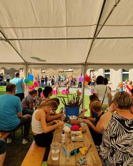Dieses Mal neu war der Malwettbewerb, der über 40 Kinder zum Mitmachen animierte. Es entstanden tolle, kreative Bilder zum Thema „Mein perfekter Ferientag“. Prämiert wurden drei Bilder verschiedener Altersklassen von 12 Festbesuchern, darunter unsere Dorfälteste Frau Petzold. Die Gewinnerin der kleinsten Altersklasse war die 3-jährige Alea, die sich über eine Wasserspiellandschaft von INTEX freuen durfte. Der 8-jährige Marvin gewann in seiner Altersklasse ein Wassereis-Experimentierset und einen Ball für sein Paris-Bild. Die 13-jährige Emma gewann mit Ihrem Bild coole JBL Kopfhörer. Alle anderen konnten sich bei Abgabe des Bildes über eine kleine Überraschung freuen.