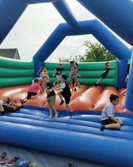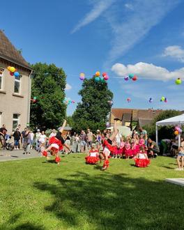 Weiterhin gab es eine Hüpfburg, kleine Spielmöglichkeiten, Traktoren und Feuerwehrautos zum Anfassen und eine große Tombola mit vielen tollen Gewinnen. Außerdem kamen 16 Uhr die Tanzgruppen der „Blue-White-Sisters“ aus Theißen vorbei und zeigten ihr Können.