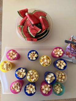 Zum großen Finale wurde der Gruppenraum in ein gemütliches Kino verwandelt. Mit selbstgemachten Eintrittskarten, Popcorn und kühlen Getränken tauchten die Kinder in die Welt des Films ein – ein Wunsch, den die Schulanfänger geäußert hatten. Die Freude war riesig!
