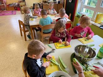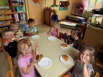 Heute wurde geschnippelt und gebaut – und zwar Burger und Chicken Nuggets! Die Kinder übernahmen viele Aufgaben selbst: Sie belegten die Burger nach Wunsch und freuten sich riesig über ihr selbstgemachtes Mittagessen. Der Stolz in ihren Augen war kaum zu übersehen!