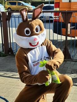 klang es kurz vor Ostern ganz oft in der Kita Gänseblümchen. Und dann am Mittwoch, dem 05.04.2023 war es endlich so weit. Ein großer, lustiger und sehr freundlicher Osterhase stand plötzlich mit einem vollgepackten Handwagen in unserem Garten und hatte für jedes Kind einen Beutel leckere Osternascherei dabei.