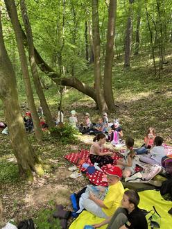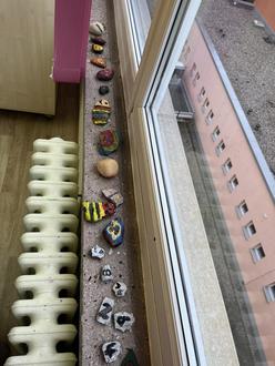 Dort sammelten wir Bachsteine, bauten Buden und lauschten der Natur. Aus den gesammelten Steinen entstanden tolle Kunstwerke und wir bemalten sie zu einen „ Tic-Tac-To“ Spiel.