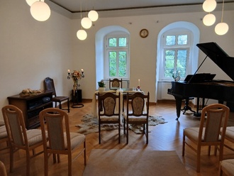 Es kann von allen Brautpaaren ohne Zusatzkosten genutzt werden. Es bietet 30 Gästen Platz. Für die musikalische Umrahmung steht ein Salonflügel zur Verfügung, der genutzt werden kann.