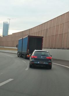 Diese Kontroll-Arbeit geschieht über drei Wochen verteilt, von Montag bis Samstag in drei Schichten pro Tag. Pro Schicht sind zwischen 60 und 80 Personen dabei: Einzelpersonen, Familien und Freunde, Schulklassen bis hin zu Firmen packen ehrenamtlich mit an. In den beiden Schichten, in denen ich mitgearbeitet habe, konnten wir 8.188 Schuhkartons reisefertig verpacken. Als ich nach meiner zweiten Schicht nach Hause startete, fuhr vor mir dieser LKW, voll bis oben hin mit Schuhkartons ...