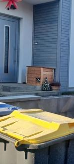 Ein Stückchen davor gibt es noch eine nette Familie die für Tiere ein großes Herz haben. Sie haben einem Streuner, der sonst nebenan in der verfallenen Scheune gewohnt hat, ein Zuhause gegeben. Sie zimmerten eine große Holzkiste als Unterschlupf für sie und geben ihr Futter. Die 2 großen Hunde die mit im Haus wohnen, stören sie offensichtlich nicht, denn sie hat das Winterquartier und das Futter dankend angenommen. Vielen lieben Dank für so eine Herztierliebe.