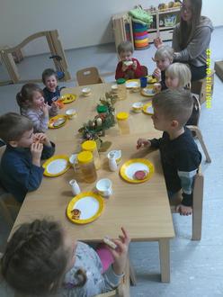 Bevor sich die Wichtelfrau wieder auf den Heimweg machte, bekam sie von den Kindern noch leckere Plätzchen zur Stärkung mit. Ein wunderschöner Vormittag, der Groß und Klein noch lange in Erinnerung bleiben wird.