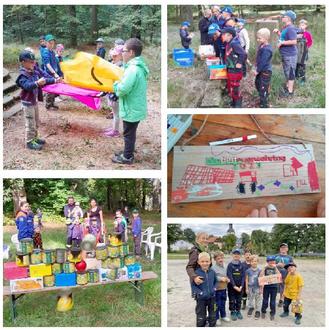 Verschiedene Aufgaben wurden an 12 unterschiedlichen Stationen bewältigt. Eine besonders spaßige Herausforderung waren kleine Flughörnchen, welche durch die Luft flogen. Eine Teamaufgabe begleitete jede Mannschaft den gesamten Vormittag. Alle durften während ihres Stationsrundganges unterschiedliche Naturmaterialien sammeln. Dabei verzweifelten die einen am Schneckenhäuschen, die nächsten an der Kastanie und wieder andere an einer Haselnuss. Den Abschluss bildete eine weitere Aufgabe für jede Mannschaft. Gemeinsam durfte ein Schild gestaltet werden, um dieses als Erinnerung mit nach Hause zu nehmen.