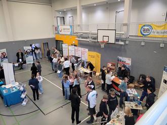 Vom Zerspannungsmechaniker bis zur Pflegefachkraft, von der Sozialassistentin bis zum Polizisten - für jede Schülerin und jeden Schüler war sicherlich etwas Interessantes dabei. Auch das Kollegium sowie viele Eltern nutzten die Gelegenheit, mit den Unternehmen ins Gespräch zu kommen. Erstmals wurden auch Schülerinnen und Schüler der Oberschule Neustadt und Maßnahmen der beruflichen Bildung zum Parcours eingeladen.