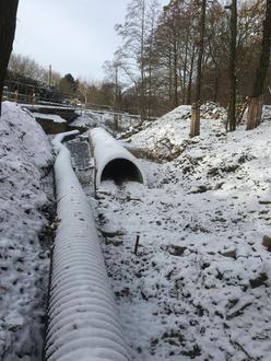 Aufweitung Gewässer und Wiederherstellung Die Arbeiten am Gewässer sind vollständig der Durchgängigkeit am Stürzaer Bach abgeschlossen, nun muss noch die Entsorgung der überschüssigen Erdmassen erfolgen, so dass danach die Baustelleneinrichtung geräumt werden kann. Jedoch machte uns auch hier der Wetterumschwung einen Stich durch die Rechnung und die Arbeiten konnten noch nicht abgeschlossen.