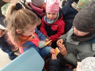 Der besondere Höhepunkt war dabei das gemeinsame Teilen der Martins-Hörnchen, das die Kinder mit viel Freude und Achtsamkeit erleben durften.