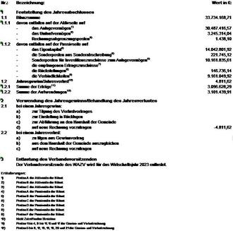 Die Verbandsversammlung des Wasser- und Abwasserzweckverbandes „Mittlere Wesenitz“ fasste in der öffentlichen Sitzung vom 20. November 2025 einstimmig den Beschluss zur Feststellung des Jahresabschlusses 2023. Gemäß § 34 Absatz 2 Sächsische Eigenbetriebsverordnung werden im Folgenden die geforderten und dem Feststellungsbeschluss beigefügten Angaben in vollem Wortlaut veröffentlicht: