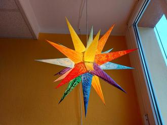 Im November bereiteten wir dann gemeinsam unseren Weihnachtsmarkt „Sternenzauber“ vor. Es wurde gebastelt, gebacken, getöpfert, gesägt und gekocht- all das, was auch in unserem Lehrplan steht. Da steht auch als Inhalt - „Vorbereitung von Festen und Feiern“ - und genau das haben alle gemeinsam umgesetzt. So kann situationsbezogen fürs Leben gelernt werden. Ein Höhepunkt hierbei war unsere Projektwoche in der Sternemanufaktur in Herrnhut. Dank unseres Fördervereins konnte hier jede Schülerin und jeder Schüler sich selbst einen Stern anfertigen. So hingen dann 24 Sterne über unserem Weihnachtsmarkt. Auch einen großen Bastelstern, wo jeder Schüler selbst eine Zacke gestalten durfte, schmückte unseren Weihnachtsmarkt. Vielen Dank an die Herrnhuter Sternemanufaktur für das Ermöglichen dieser zauberhaften Projektwoche! Allen - auch den Lehrkräften - wurde hier ein Lächeln aufs Gesicht gezaubert.