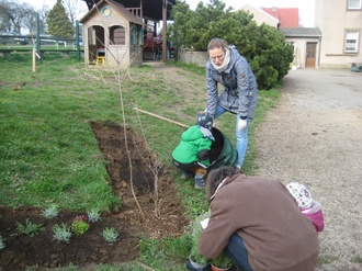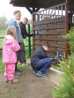 an die fleißigen Helfer beim Frühjahrsputz im Kindergarten “ Zwergenland am Weinberg“ in Wilschdorf. Herbst und Winter hatten ihre Spuren im Spielgarten hinterlassen. Dank vieler fleißigen Hände wurden die Wiesen gesäubert, neue Sträucher gepflanzt, eine Blumenrabatte angelegt und Sträucher verschnitten. Die Holzverkleidung unserer Sitzecke bekam einen neuen Anstrich und das Hochbeet der Heinzelmännchen wurde mit Ästen, Laub und Erde befüllt. Rings um den Kindergarten wurde das Unkraut und altes Laub entfernt. Nun sieht unser Garten wieder schön aus.