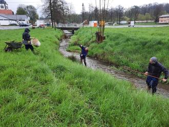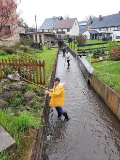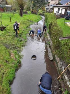 Trotz des schlechten Wetters war der 1. Aktionstag am 29. April am Kalten Bach ein voller Erfolg. Über 30 Anwohner sind unserem Aufruf mit Schaufeln, Gummistiefeln und viel Elan gefolgt um einen kleinen Beitrag zum Hochwasserschutz am Kalten Bach zu leisten. Ein großes Dankeschön gilt Andre Kugel, dem Tiefbau Steglich und Klaus Schulz, die mit der Bereitstellung von Technik eine große Hilfe waren. Mit vereinten Kräften konnte viel Sediment und Bewuchs an verschiedenen Stellen aus dem Bachbett geholt werden.