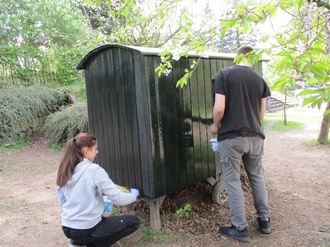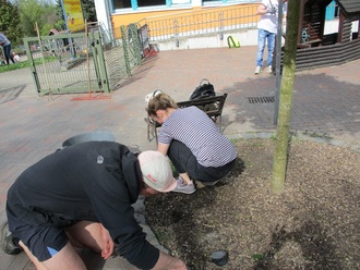 Man nehme: Sonne, einen Freitagnachmittag im April; 17 Pädagogen und ca. 120 Hände helfender Eltern und großer Geschwister, einen Hausmeister; zwei Container, Hacken, Harken, Rechen, Gartensäcke, Schubkarren, Heckenscheren, Baumsägen, Pinsel, Farbe, Zaunfelder, Blumenerde, Pflanzen, Hängematten, Werkzeuge aller Art; Getränke und viel Gelächter und gute Laune.
