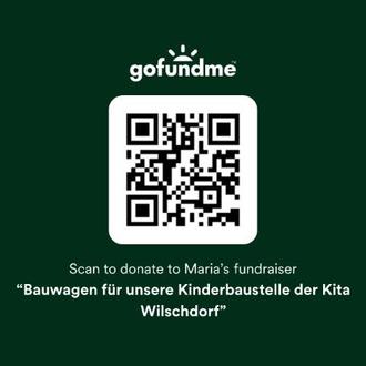 Da nach wie vor die meisten tollen Anschaffungen auch eine Menge Geld kosten, sind wir immer wieder auf so tolle Hilfen angewiesen. Auch jetzt läuft gerade eine große Spendenaktion, welche dem Ausbau unserer Bewegungsbaustelle im Garten dienen soll. Es soll ein Bauwagen, sowie Baugeräte für die Kinder angeschafft werden. Wenn Sie folgenden QR-Code mit Ihrem Handy scannen, kommen Sie auf die entsprechende Spendenseite: