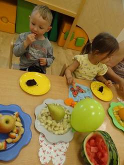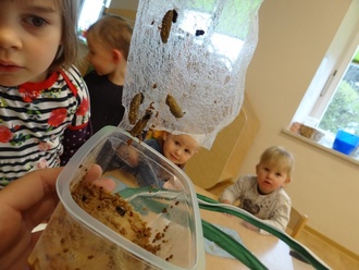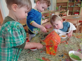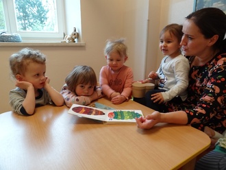 Gemeinsam mit den Kindern begleiteten wir die Entwicklung des Distelfalters von klitzekleinen Raupen bis hin zu wunderschönen Schmetterlingen, welche wir in unserem Garten fliegen lassen haben. Wir gestalteten ihnen ein eigenes Schmetterlingshaus, lasen und sangen „die kleine Raupe Nimmersatt“, ließen eine Raupe aus Holz durch ein Fädelspiel schlängeln, bastelten unsere eigenen Raupen & Schmetterlinge. Als krönenden Abschluss bereiteten wir aus den Gaben der Eltern unser eigenes Raupenfrühstück und tanzten den Lieblingstanz der vergangenen Wochen: „Schmetterling, du kleines Ding“.