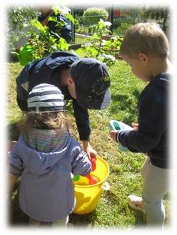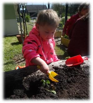 Die Pflanzen werden nicht nur betrachtet, sondern mit allen Sinnen entdeckt. Es entstehen kleine Erlebnisorte, die wir liebevoll in unseren Garten integrieren – so wird jeder Besuch zu einer spannenden Reise in die Welt der Natur. Mit großer Begeisterung pflanzten die Kinder unter anderem köstliche Naschsträucher, die uns von Familie Bachmann gespendet wurden, in unsere Naschecke.