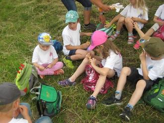 Am 19.06.2023 war es endlich so weit. Die Vorfreude auf diesen Tag war groß. Am Morgen kamen alle mit einem Schlafsack und Sachen für eine Übernachtung in den Kindergarten. Die Sachen wollte uns Frau Lehmann auf den Campingplatz bringen. Mit im Gepäck hatte sie auch unser Abendbrot. Nach dem Mittagessen ging es dann los. Wir liefen zur Bushaltestelle und fuhren mit dem Bus bis Polenz. Dort begann unsere Wanderung zur Entenfarm. Nachdem wir den höchsten Punkt erreicht hatten, machten wir unsere erste Pause. Weiter ging unser Weg über Cunnersdorf nach Ehrenberg. Auf dem Spielplatz machten wir die zweite etwas längere Pause. Wir hatten Zeit, die Spielgeräte auszuprobieren. Das letzte Stück bis auf den Campingplatz war dann nicht mehr so anstrengend.