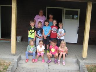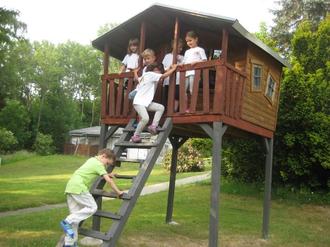 Neugierig besahen wir unsere Bungalows. Als erstes ging es natürlich um die Bettenverteilung. Wer schläft wo und mit wem in welchem Bungalow und wer durfte im Doppelstockbett oben schlafen. Wir entschieden uns für ein Mädchenzimmer und ein Jungenzimmer. Schnell wurden die Schlafsäcke auf den Betten ausgebreitet und die Wechselsachen und das Waschzeug bereitgelegt. Zur Erfrischung wurde dann erstmal die Melone verspeist. Nun hatten wir Zeit auch den Spielplatz auf dem Campingplatz in Besitz zu nehmen. Auf dem Spielplatz waren eine Kletterwand, eine Wippe, ein Baumhaus, Schaukeln und ein Balancierbalken. Von Müdigkeit war keine Spur mehr, aber der Hunger stellte sich ein. Also holten wir aus den Kühlschränken das von den Eltern vorbereitete Abendbrot. Schnell waren die leckeren Schnitten das Obst und Gemüse verputzt. So manche Eltern hätten gestaunt, was ihr Kind so verspeisen kann. Nach einer „Katzenwäsche“ ging es in die Betten. Die Taschenlampen und Knicklichter wurden jetzt zum Einsatz gebracht. Erst spät in der Nacht schlief der letzte ein. Am Morgen gab es auf dem Campingplatz ein leckeres Frühstück. Und danach dauerte es auch gar nicht lange, da kamen einige Eltern, um uns abzuholen und in den Kindergarten zu fahren. Schade, dass die Zeit so schnell vergangen war, aber es hat uns allen sehr gut gefallen.
