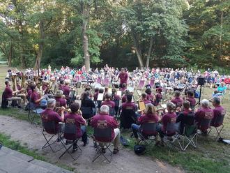 Ein zweites Jubiläum folgte kurz darauf: Am 5. Juli lud der Posaunenchor zur nunmehr schon traditionellen „Musik im Lieblingstal“ ein. Ursprünglich war diese sog. „Übungsstunde im Freien“ als einmaliges Event zum 50jährigen Jubiläum vorgesehen. Der große Erfolg des ersten Konzerts hat uns aber ermutigt, diese Lieblingstal-Musik zur Tradition werden zu lassen. Und so trafen sich im 10. Jahr 35 Bläser und über 150 begeisterte Besucher bei herrlichem Wetter vor der Hubertuskapelle.