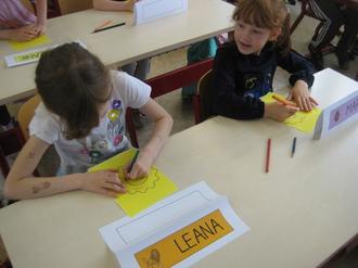 Danach sollten wir auf einem Blatt, auf dem das Alphabet stand, die Buchstaben von unserem Vornamen ausmalen.