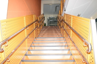 Besondere Schwierigkeiten stellten die Treppenhäuser dar. Neben dem Stufenmaß galt es Absturzsicherungen, Handläufe und Einklemmschutz zu beachten. Fluchtwege mussten neu geplant werden.
